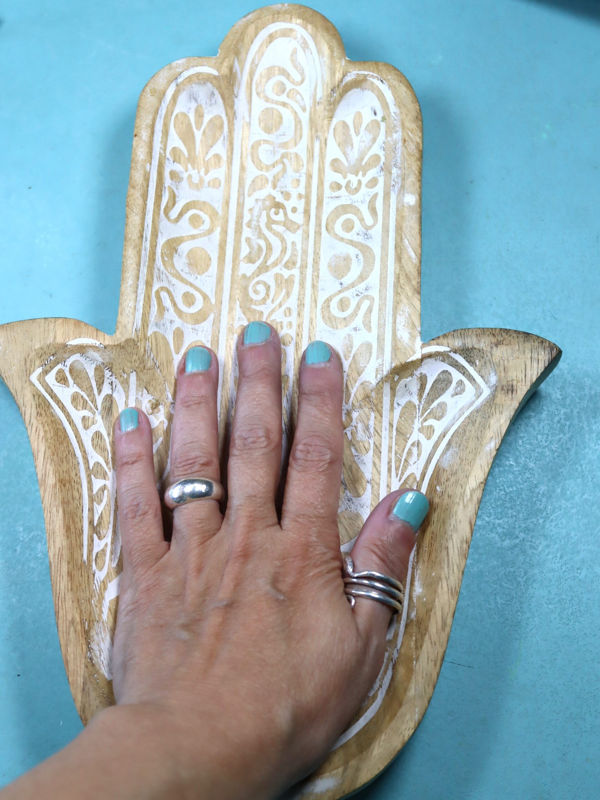 La mano de Fátima o Jamsa es un antiguo símbolo de protección utilizado principalmente por los musulmanes. Se dice que evita el mal de ojo y la envidia, y atrae prosperidad y buena suerte.