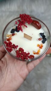 Ritual: El propósito de una vela es ser encendida. Al hacerlo el fuego entra en combustión con el aire y la cera sólida comienza a transformarse en líquida; de este modo los cuatro elementos empiezan a crear su alquimia, ayudando a convertir tu intención en una realidad.