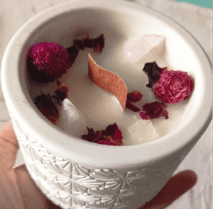 Esta vela tiene una intención: Hace un tiempo pasé por unos meses difíciles, estaba cansada de escuchar a todo el mundo e incluso de escucharme a mí misma. Poco a poco descubrí que necesitaba recuperar lo que para mí es verdadero, simplificar mi vida. Volver a mí, a mi origen… ¿Te ha pasado alguna vez? Y es que en el origen no había nada. Lo primero que se creó fue la luz y de ahí surgió el mundo. Un mundo que hoy vivimos lleno de ruido, opiniones, expectativas, miedos… ¿Pero y si creas un espacio para volver a ti?